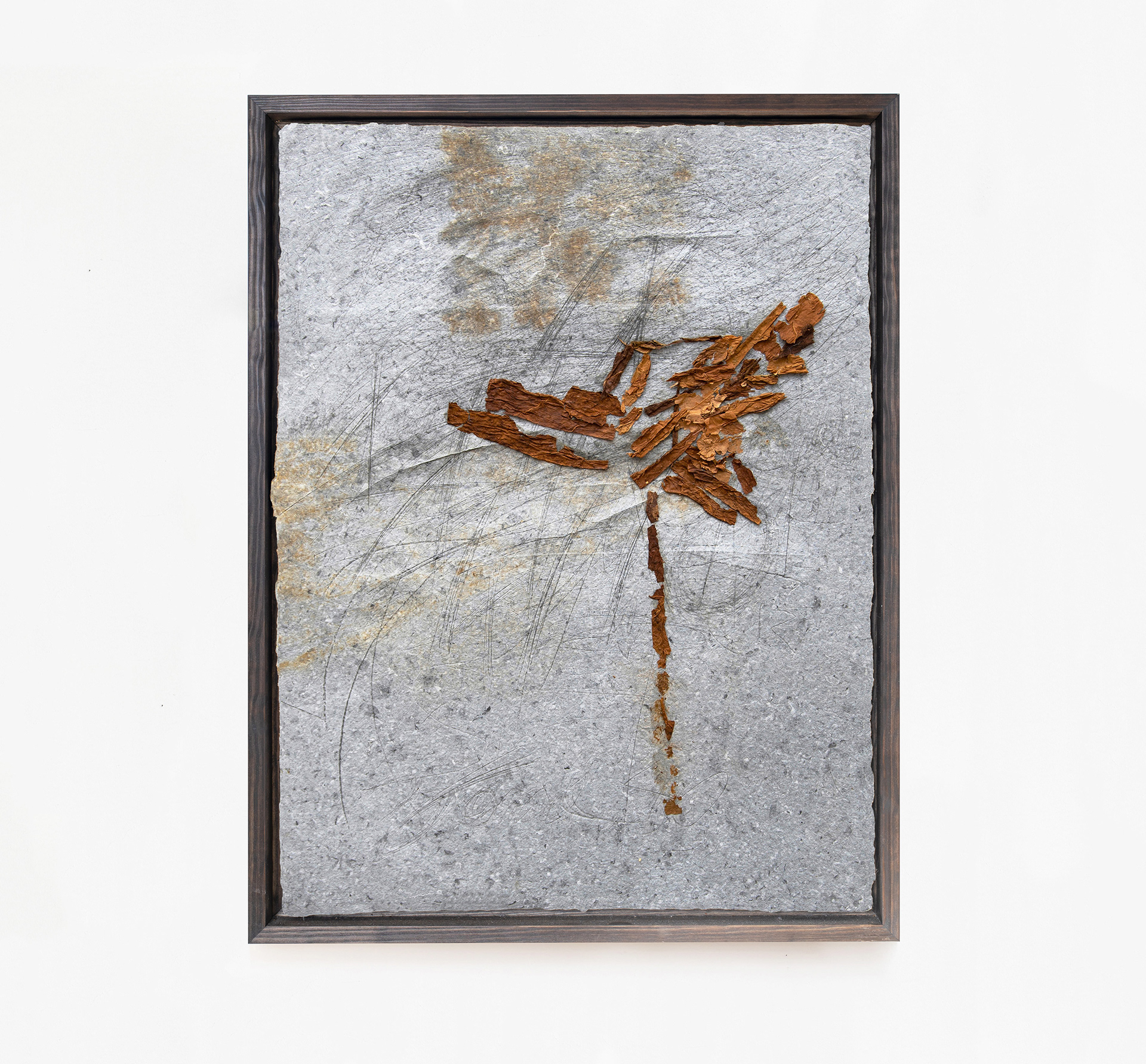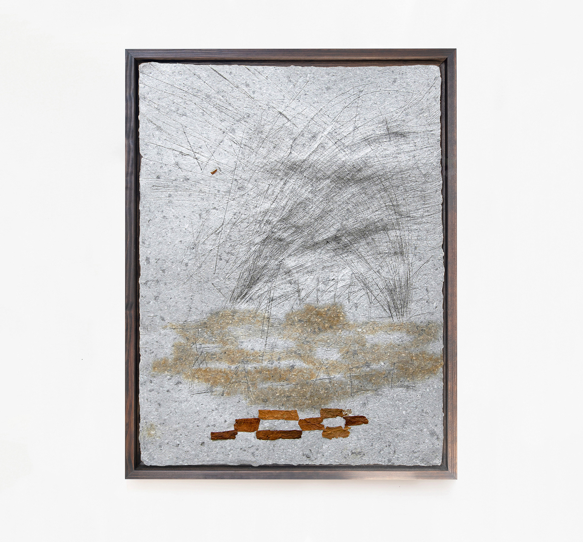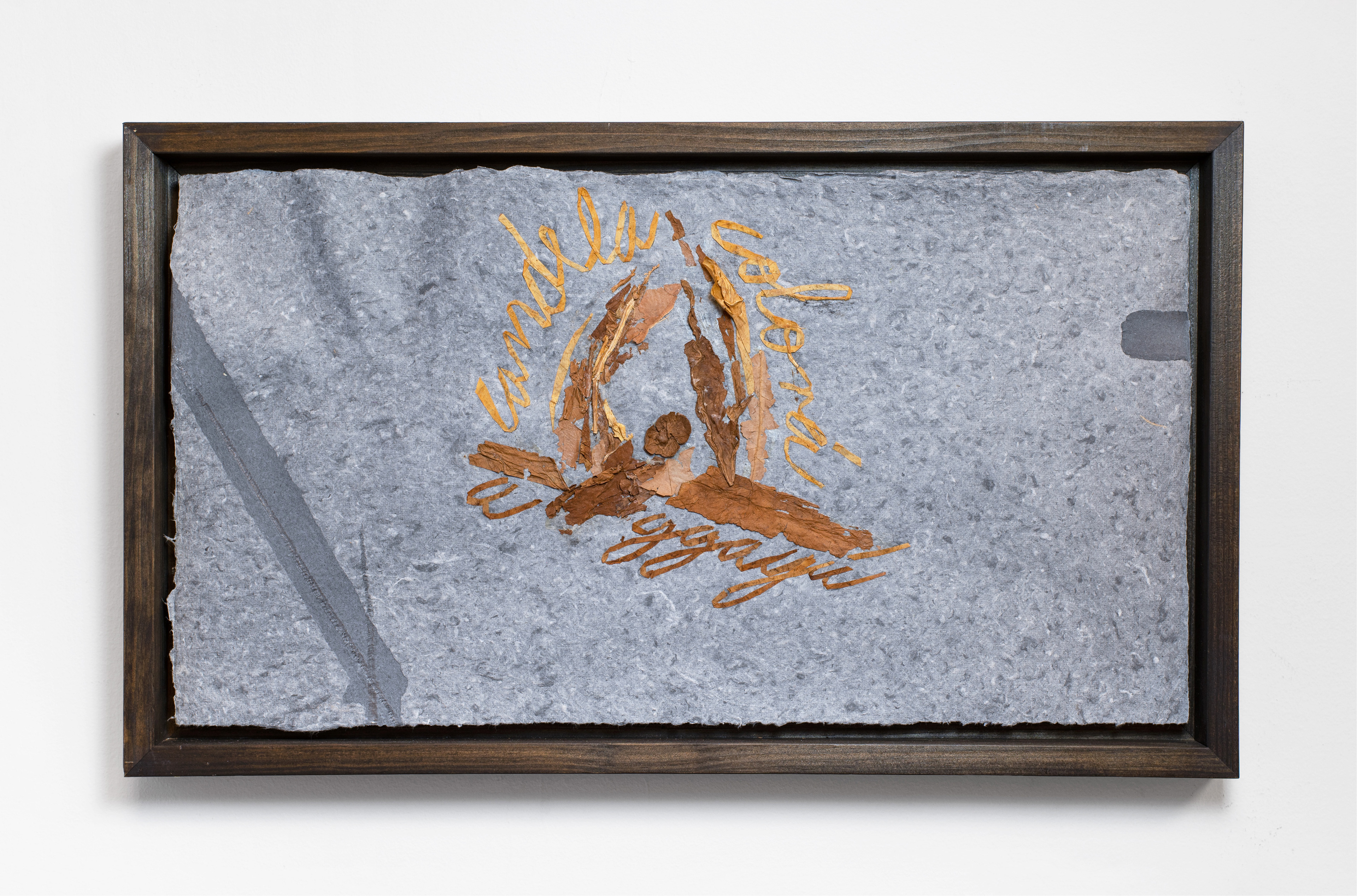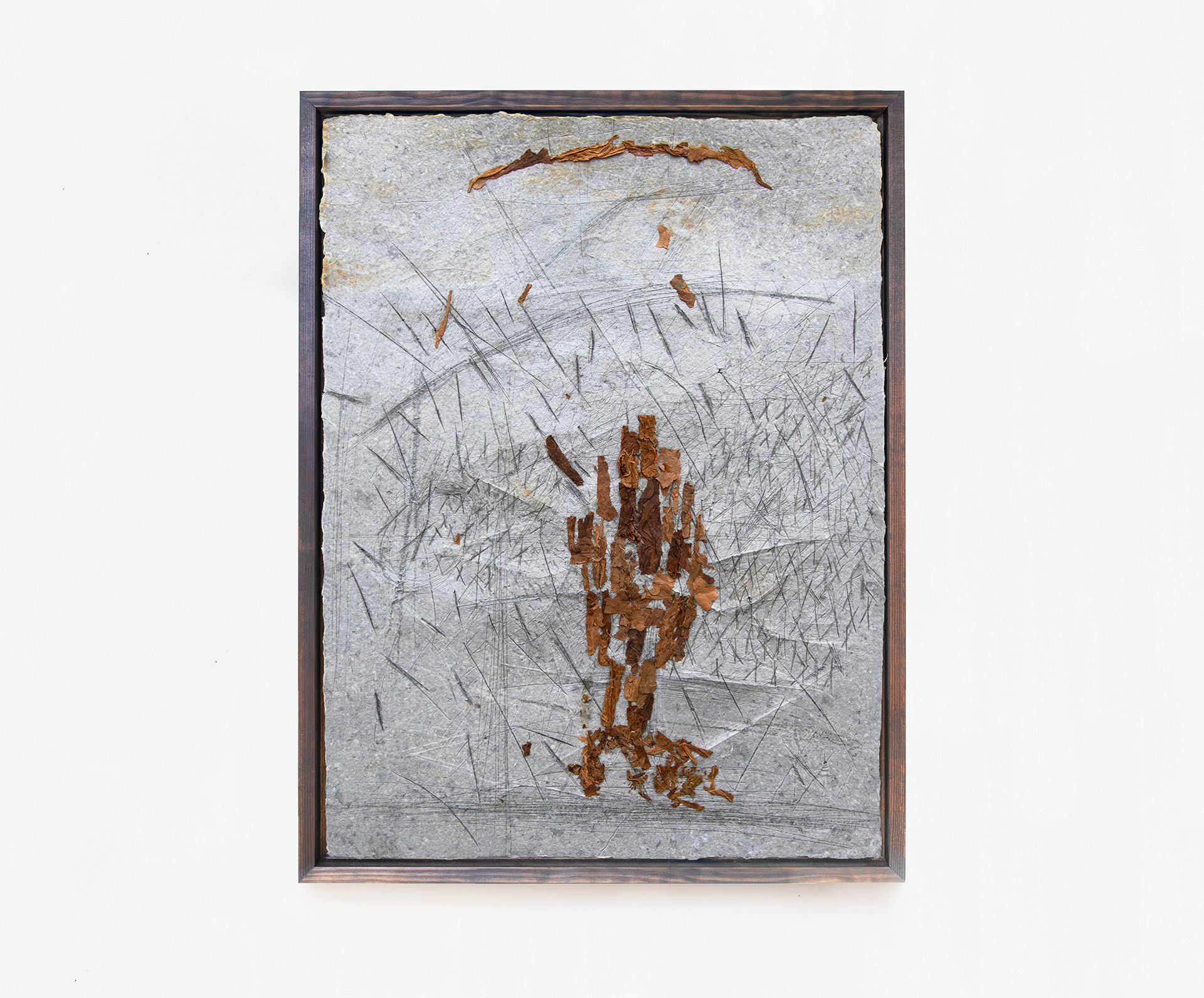 Cuban tobacco on handmade paper dyed with graphite, pulp painting.