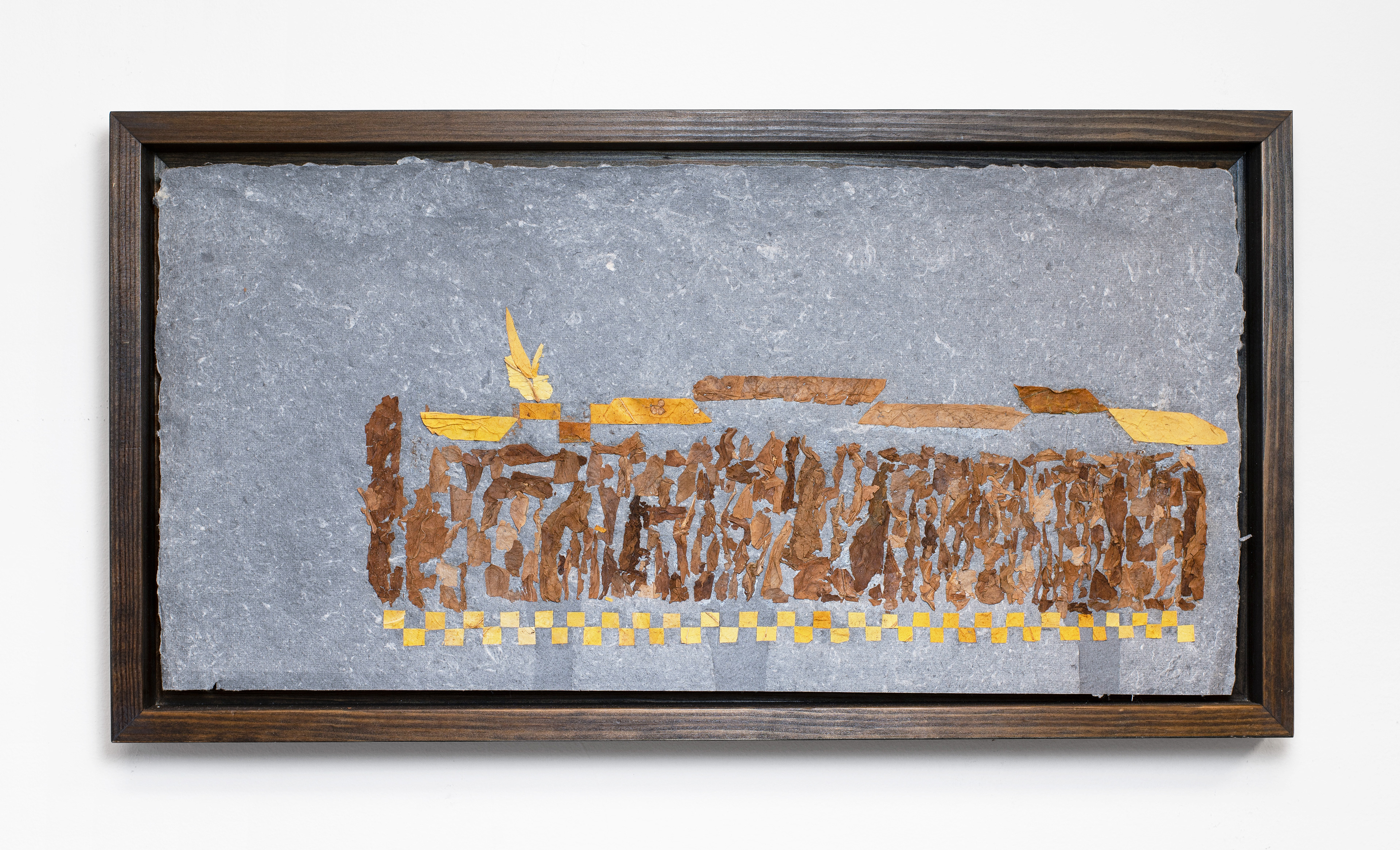 Cuban tobacco, Virginia Flue Cured tobacco on handmade paper synthetically dyed with graphite, pulp painting.