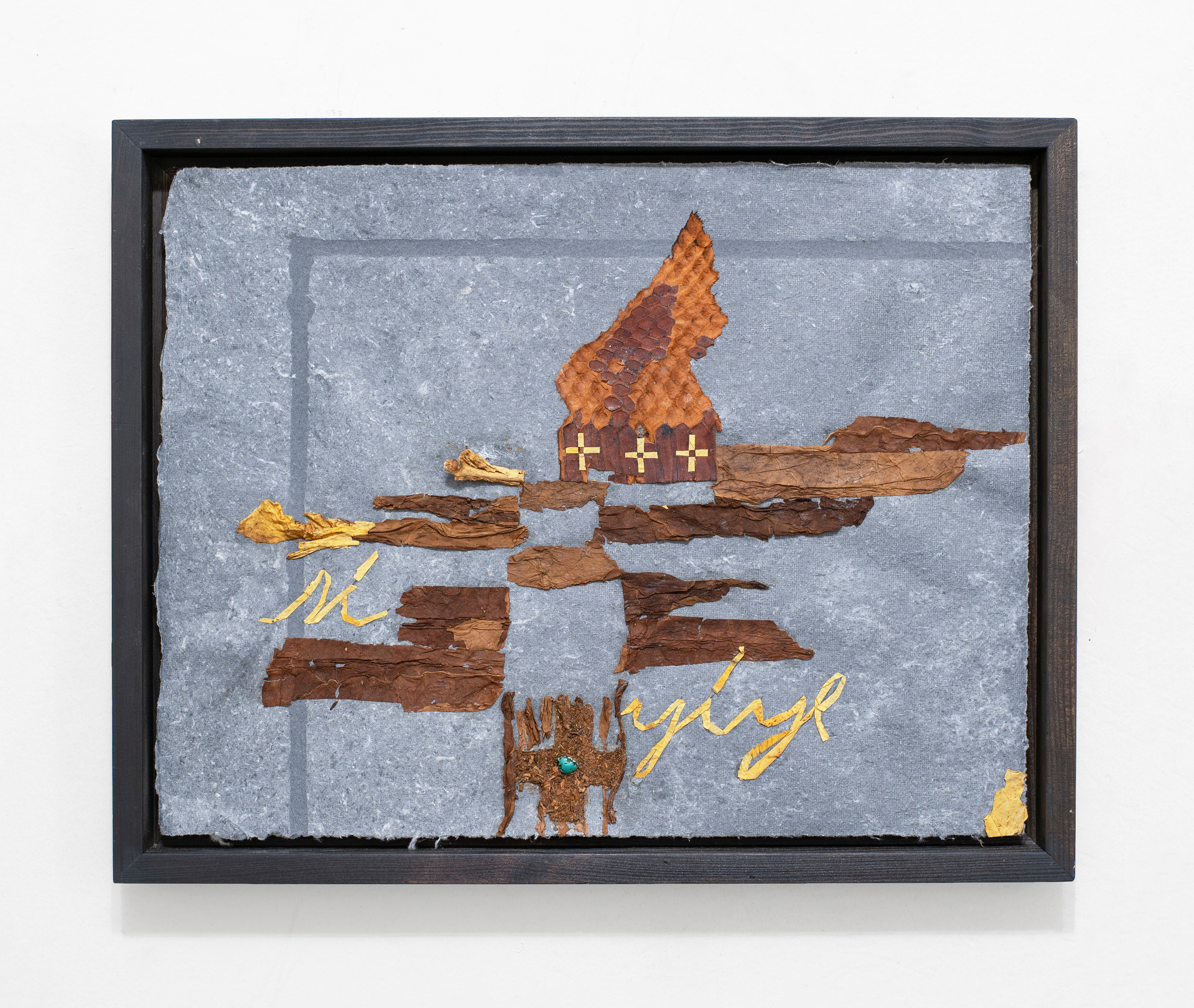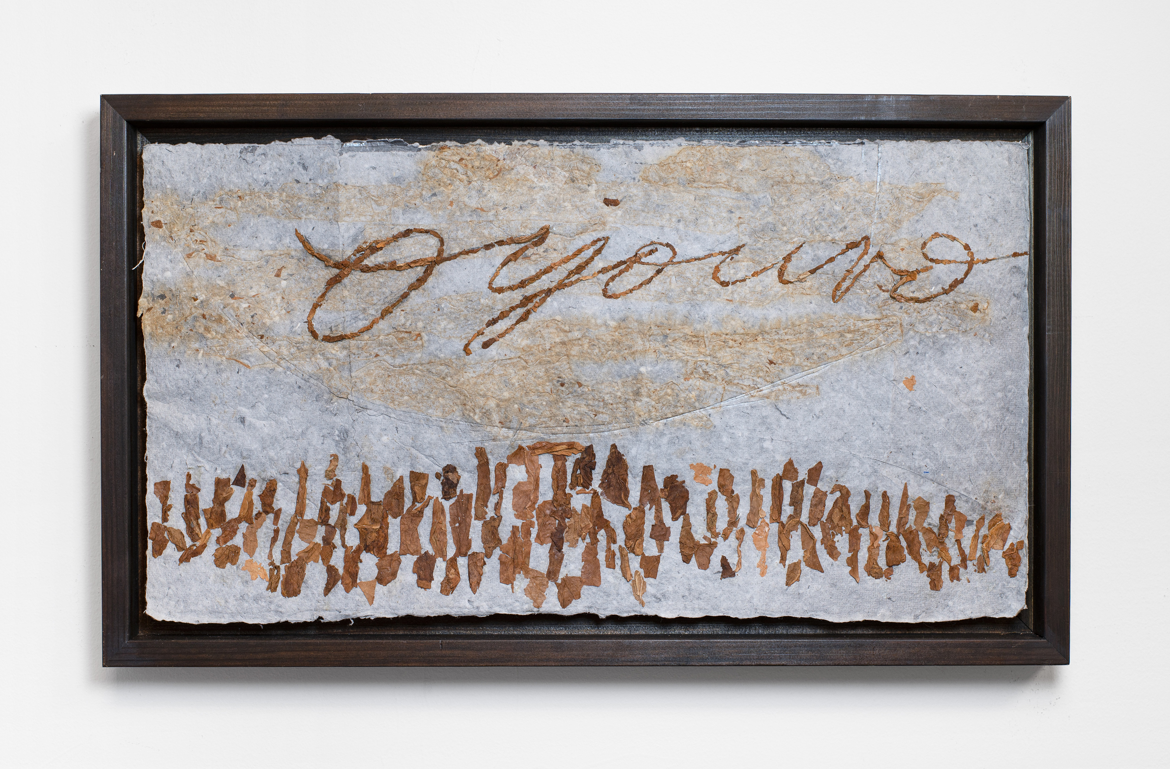 Cuban tobacco on handmade paper synthetically dyed with graphite.