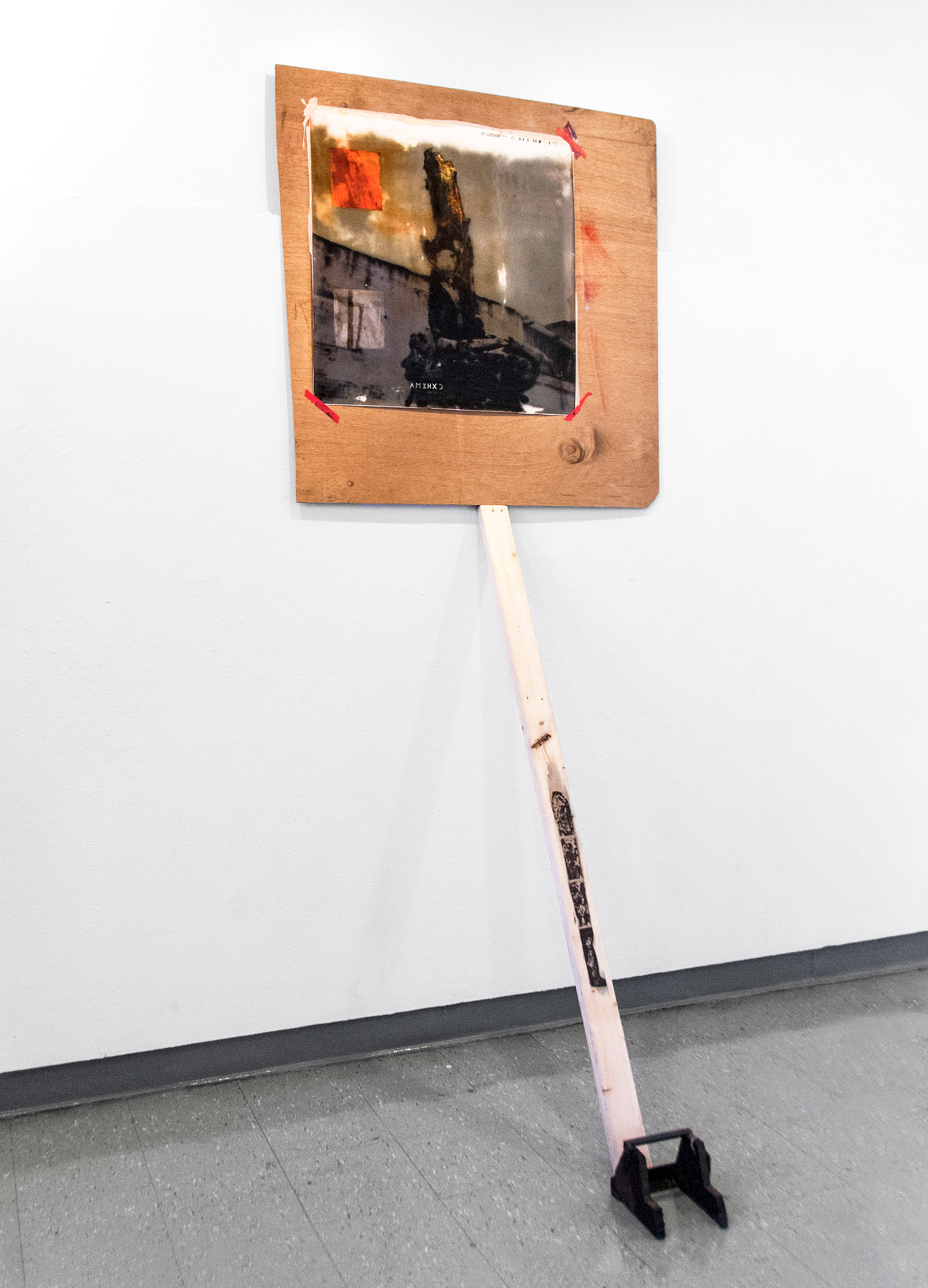 Raw pigment, tape, clear film, citric acid, steel, plywood.