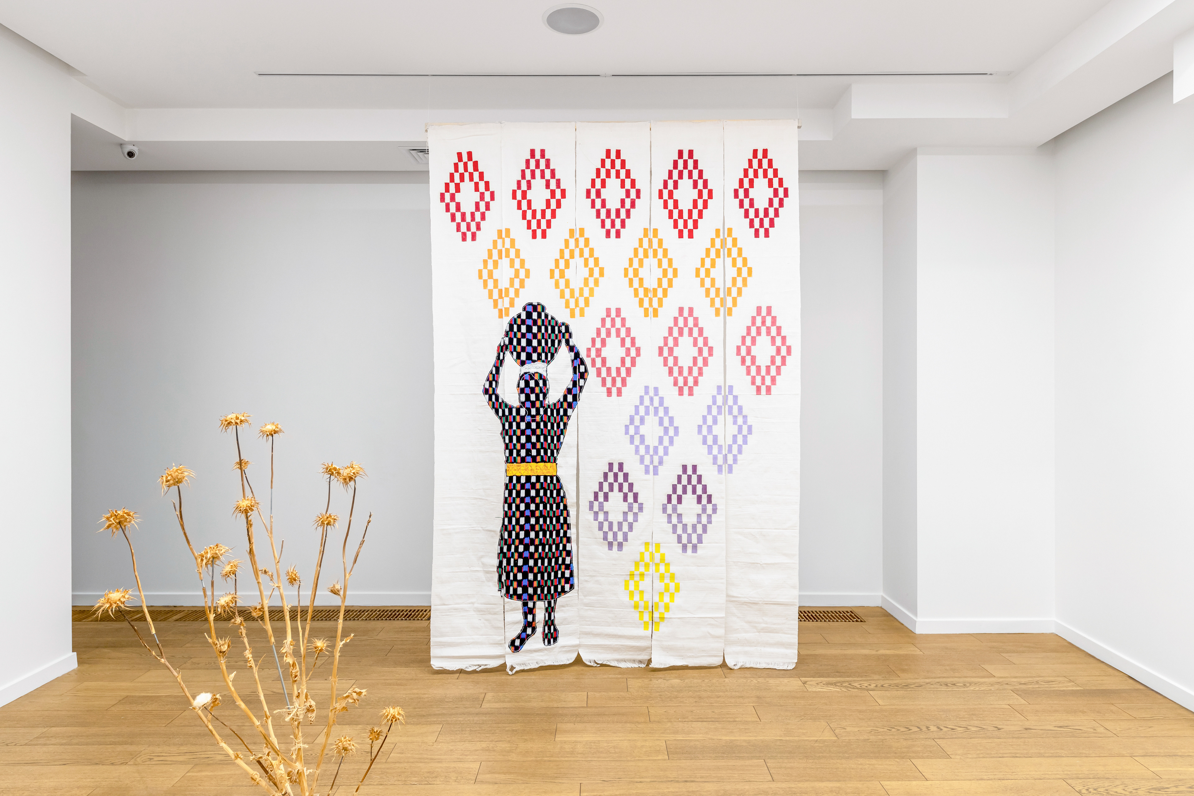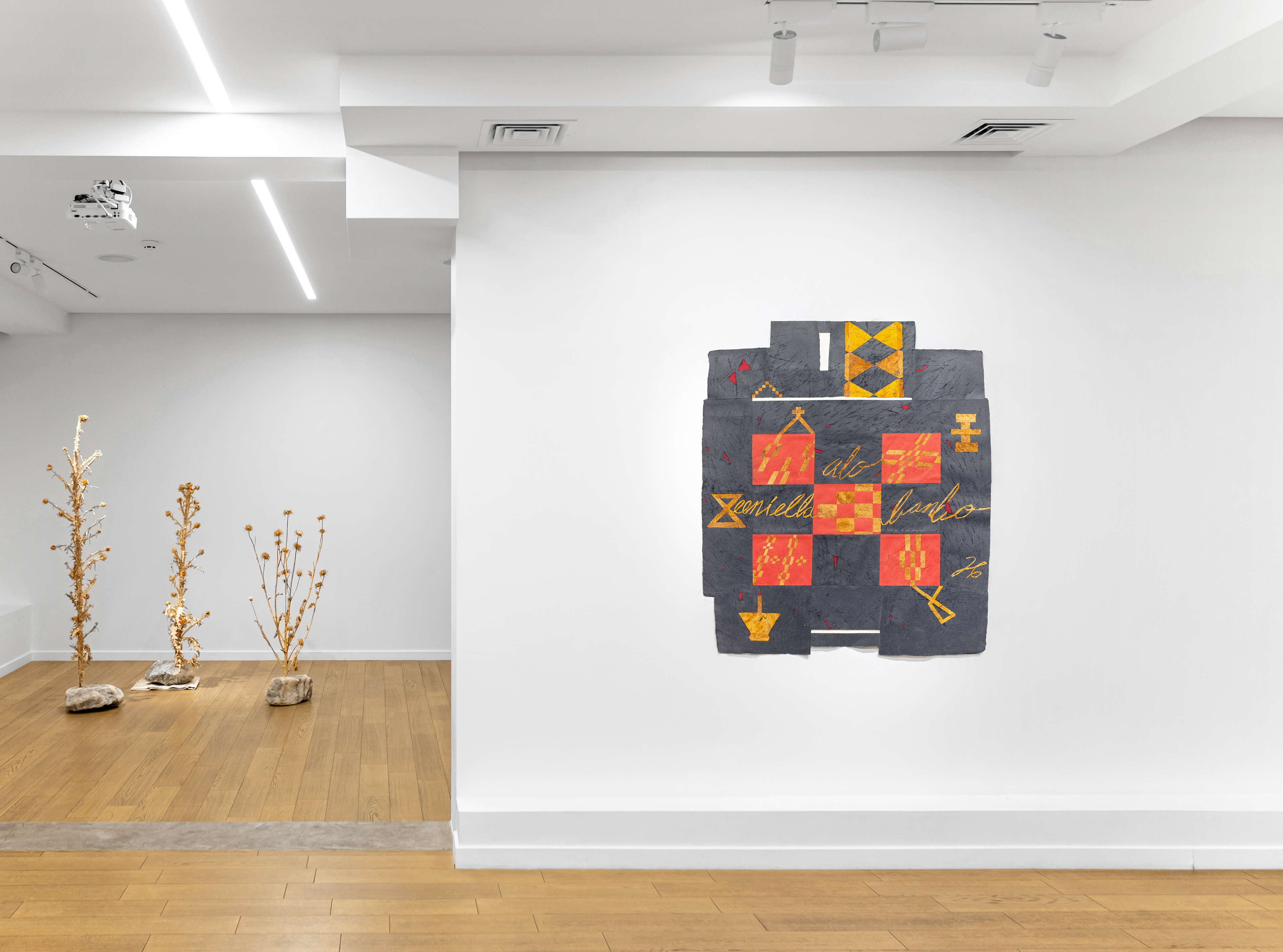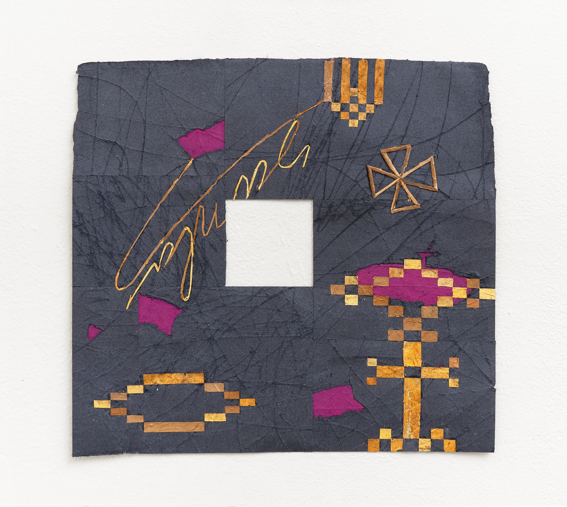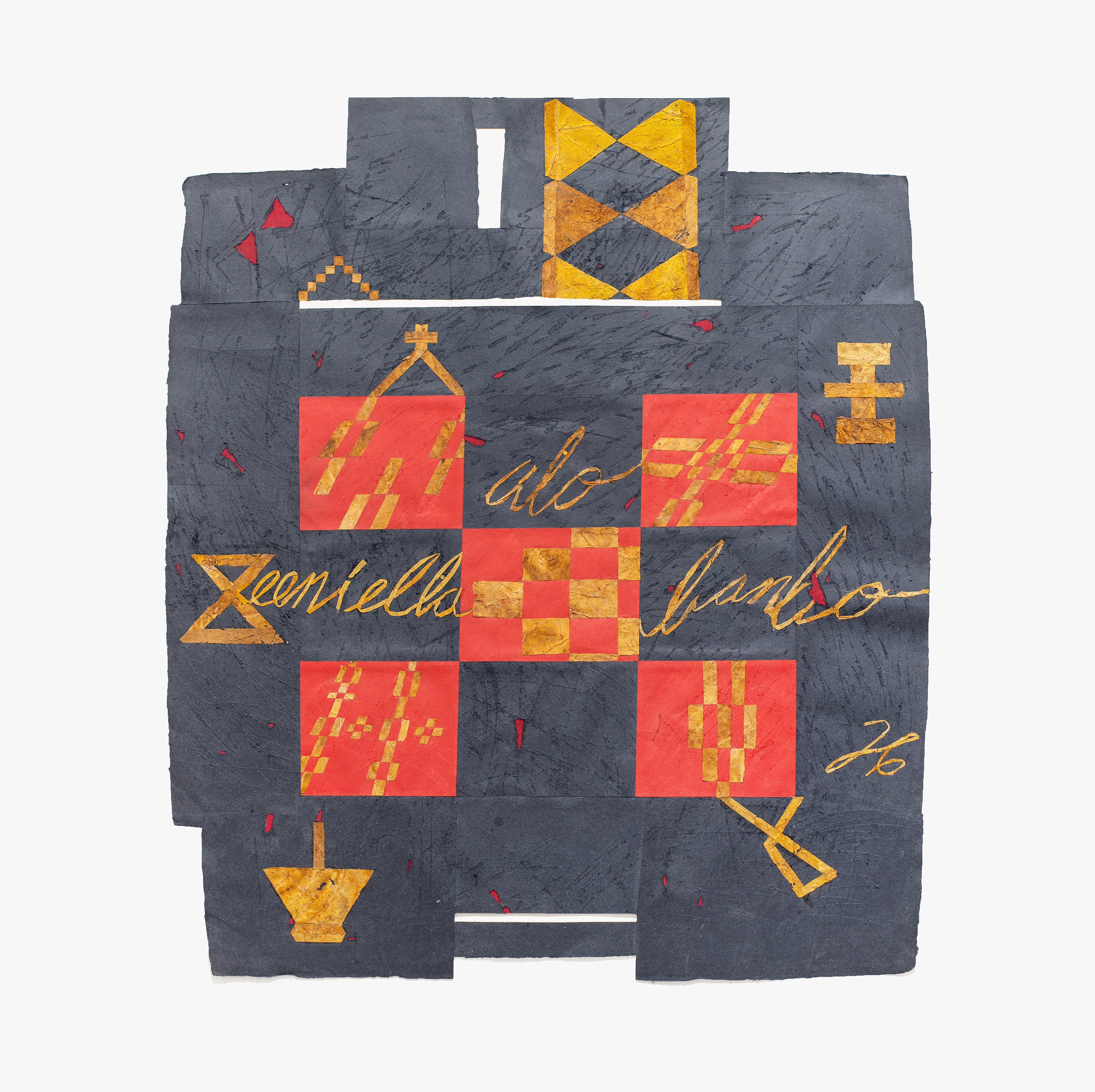 RIGHT: Untitled (Nsasi, olú batá), 2024, Virginia Flue Cured tobacco on handmade paper. 52 X 45 inches